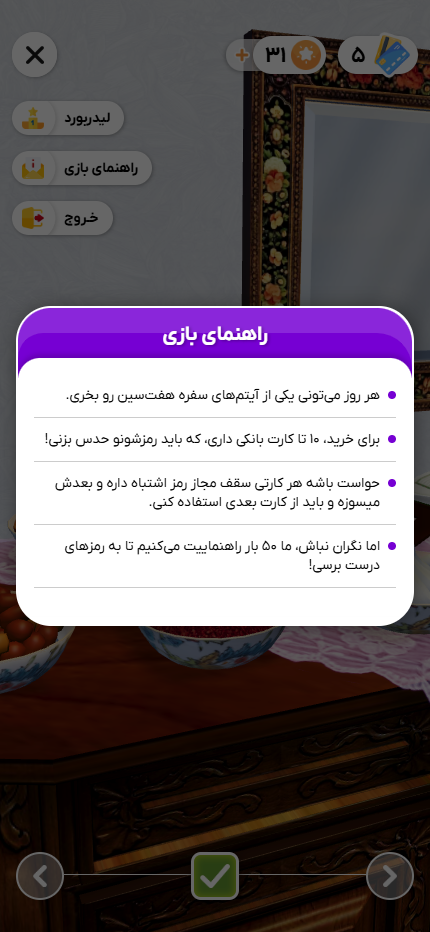 Each completed “sin” unlocked rewards such as vouchers, discounts, and high‑value prizes with bigger bonuses for users who completed all eight. To add excitement, we integrated time‑limited challenges and festive animations that brought the spirit of Nowruz directly into users’ screens.